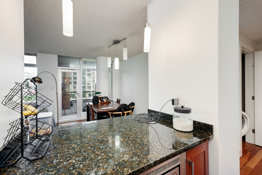 This immaculate home features cherry hardwood floors, granite & marble countertops, stainless appliances, gas fireplace, Travertine tile, European faucets, and floor-to-ceiling windows that fill the space with natural light. Steel-and-concrete construction offers exceptional amenities including gym, sauna, steam room, residents’ lounge, hobby room, secure underground parking, storage locker, and bike storage. Professional caretaker and concierge complete this downtown lifestyle. Priced for value—book your showing and bring your offers!