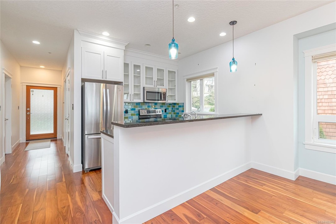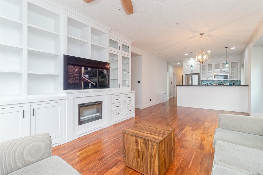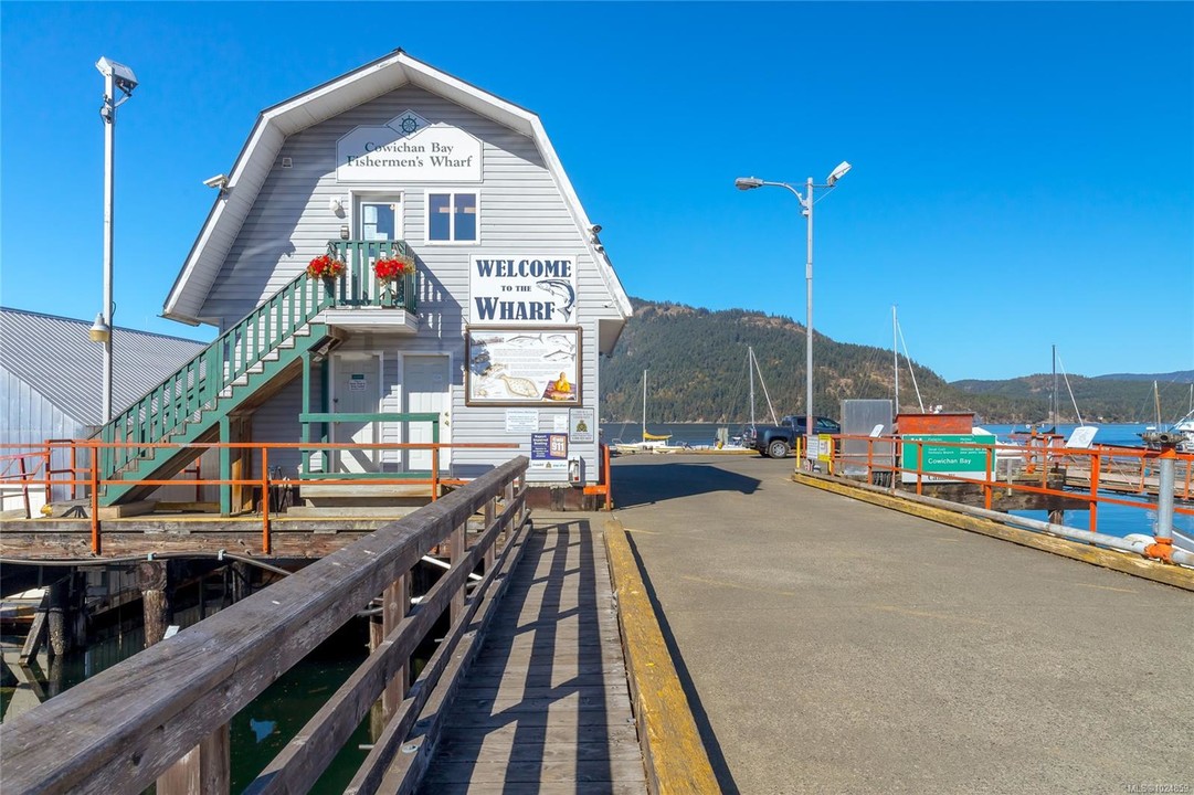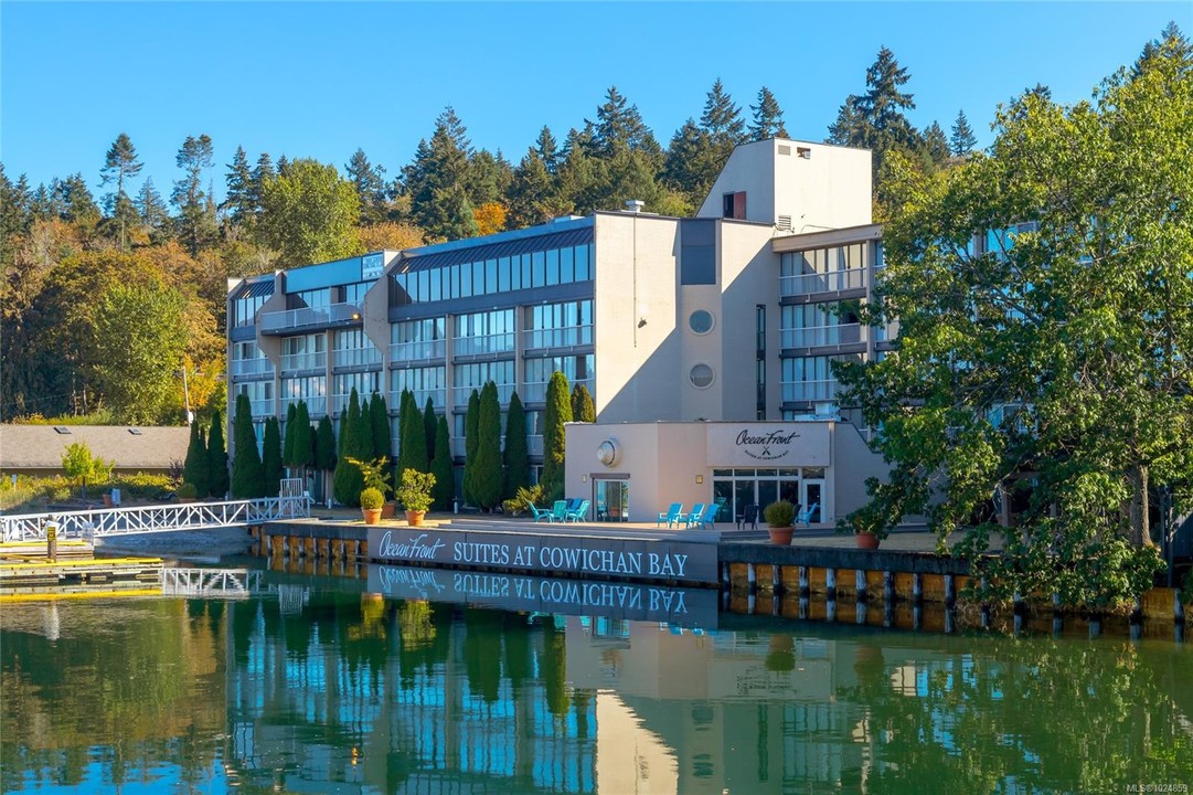 Wake up to ocean views & embrace the seaside life in this top-floor 2-bedroom PLUS den condo at the "Villas on the Bay", nestled in the charming waterfront community of Cowichan Bay. Just steps from the marina, browse local gift shops, enjoy fresh pastries from nearby bakeries, dine at popular oceanfront restaurants, or launch your kayak and explore the bay. Inside, the bright open-concept living space was fully updated in 2017 & features a well-appointed kitchen with granite countertops, custom cabinetry, 9-foot ceilings, & beautiful hardwood & tile flooring. The primary bedroom & living area both open onto an ocean-view deck, perfect for relaxing & soaking in the coastal scenery. A spacious ensuite with a walk-in closet, second bedroom, den, & main bath complete the floor plan. TWO Secure parking spots, storage, elevator access, & a covered patio in the rear of the building. This is more than just a home - it's a walkable waterfront lifestyle you'll love coming home to every day!